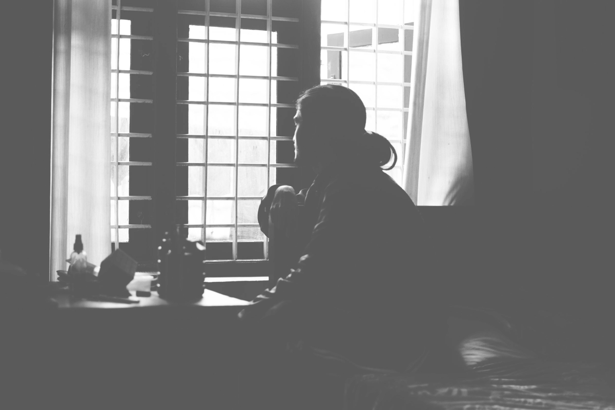 person looking out the window